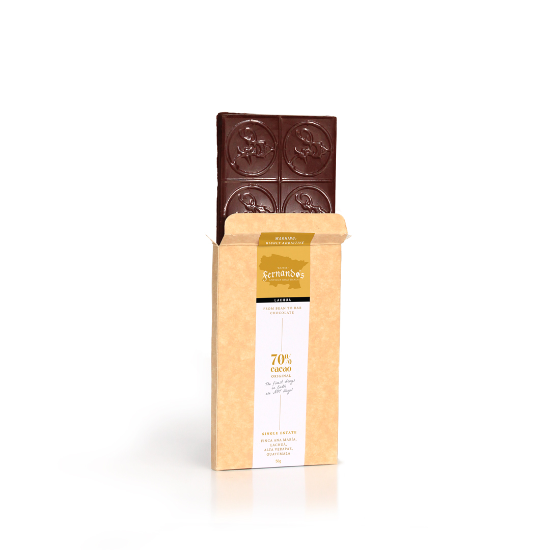 Dark chocolate bar made with fine cocoa from Lachuá, Alta Verapaz.