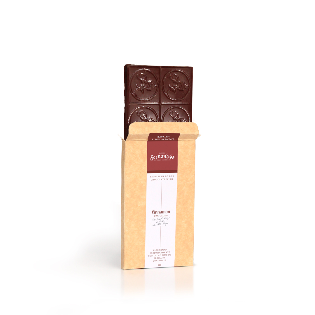 Dark chocolate bar with cinnamon made with fine cocoa from Guatemala.
